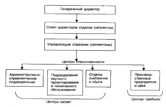 Этап I. Формирование децентрализованной структуры управления с выделением центров ответственности. Последние, в свою очередь, должны подразделяться на центры прибыли и центры затрат.