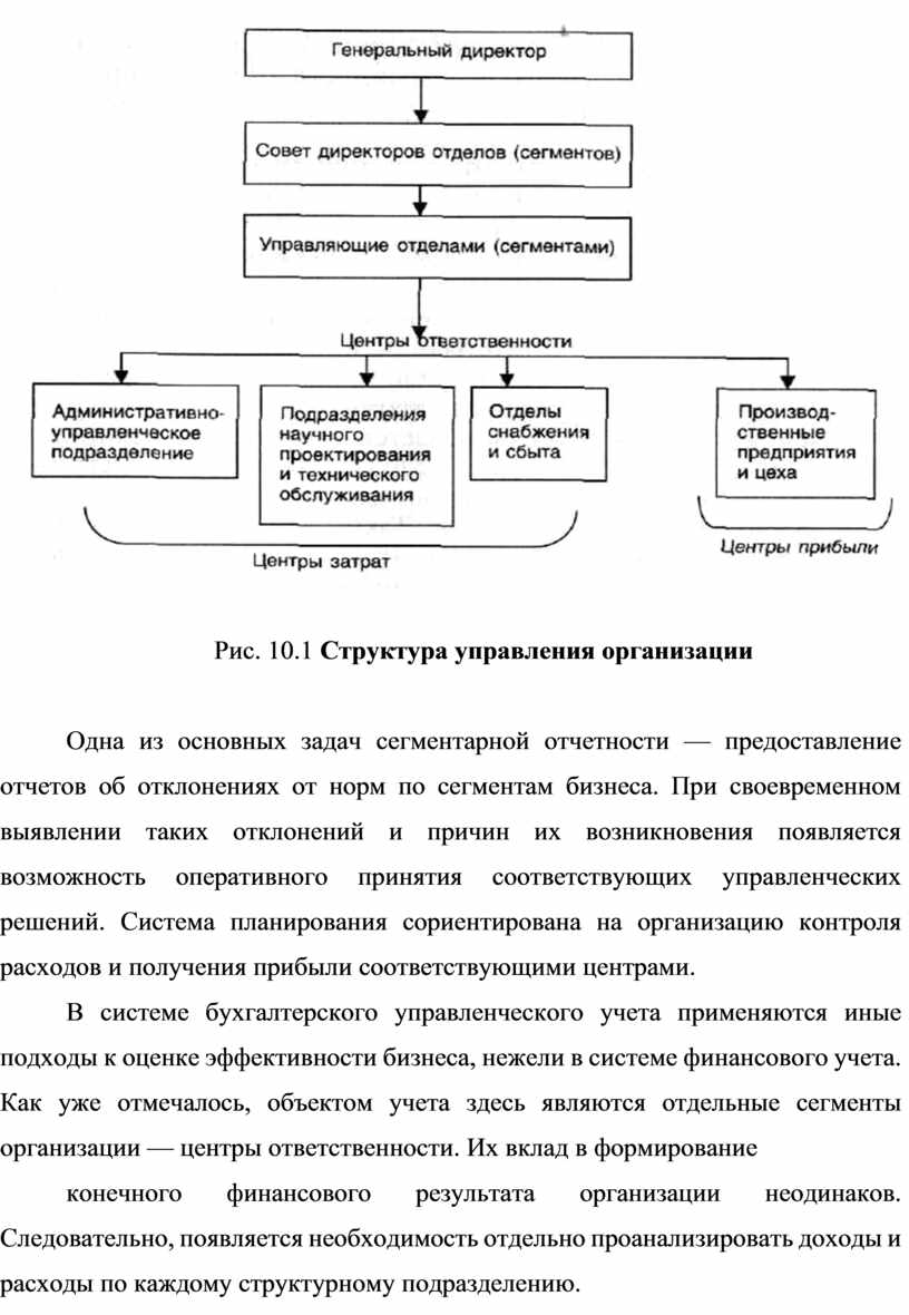 Одна из основных задач сегментарной отчетности — предоставление отчетов об отклонениях от норм по сегментам бизнеса. При своевременном выявлении таких отклонений и причин их возникновения появляется возможность оперативного принятия соответствующих управленческих решений. Система планирования сориентирована на организацию контроля расходов и получения прибыли соответствующими центрами.