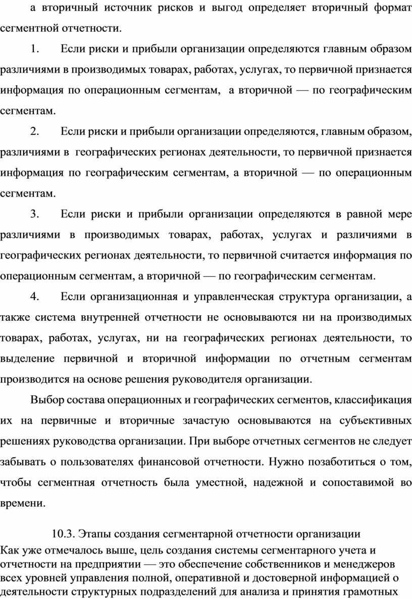 2. Если риски и прибыли организации определяются, главным образом, различиями в географических регионах деятельности, то первичной признается информация по географическим сегментам, а вторичной — по операционным сегментам.