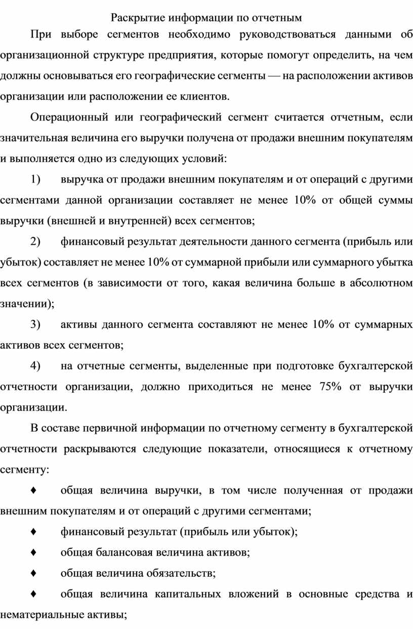 4) на отчетные сегменты, выделенные при подготовке бухгалтерской отчетности организации, должно приходиться не менее 75% от выручки организации.