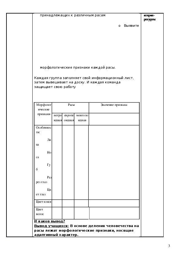 Группы составляют характеристику основных рас по