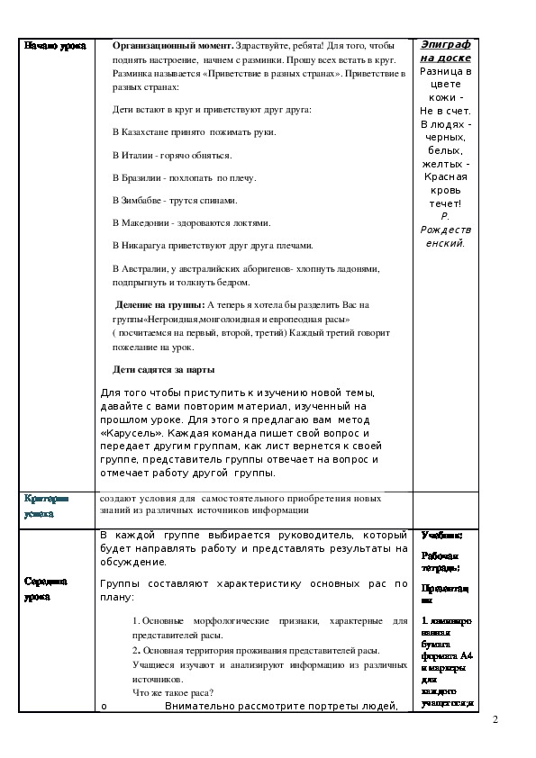Цели урока: познакомиться с расовым и национальным составом мира.
