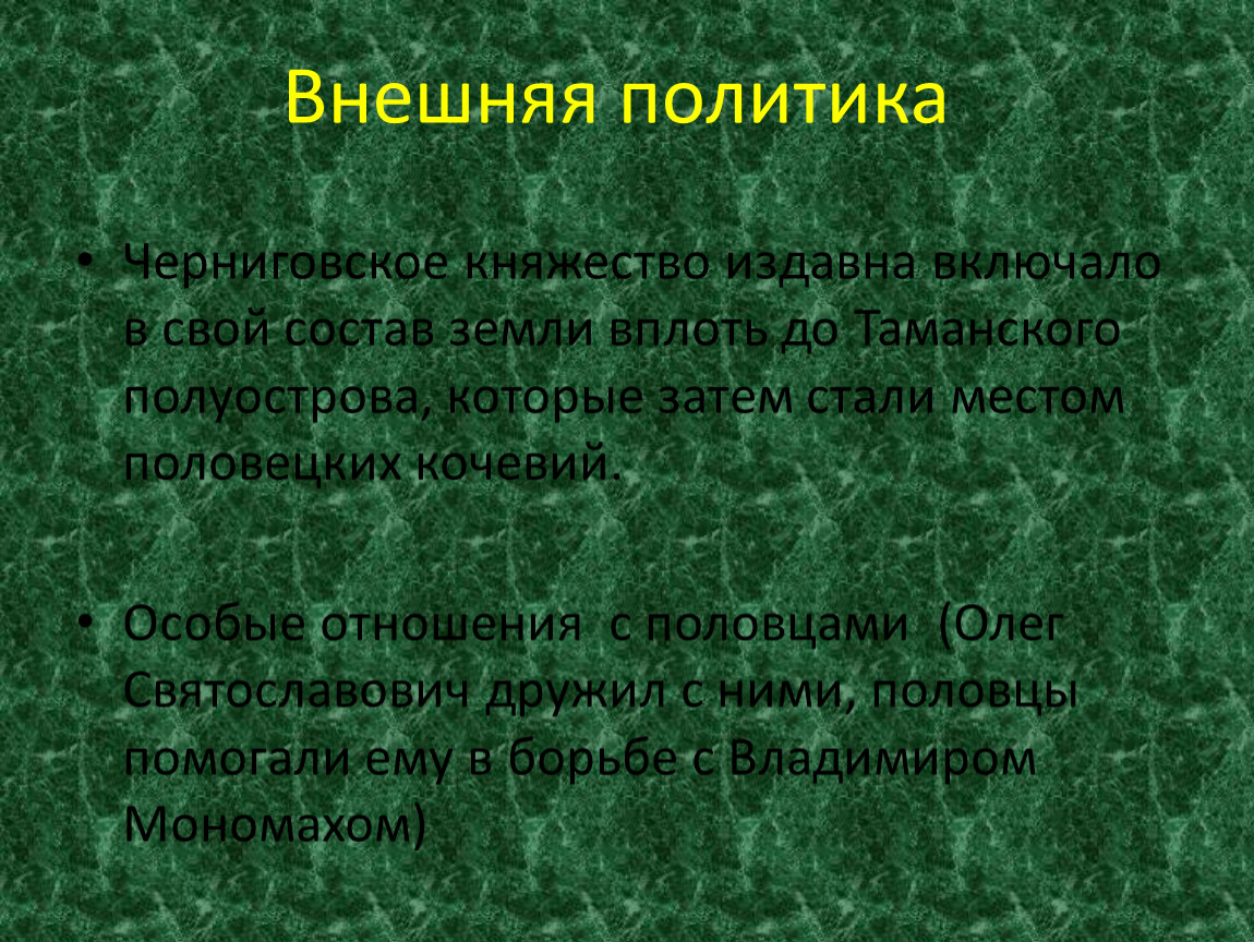 Черниговское княжество издавна включало в свой состав земли вплоть до Таманского полуострова, которые затем стали местом половецких кочевий.