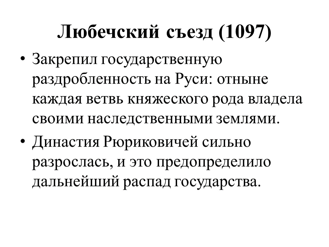 Династия Рюриковичей сильно разрослась, и это предопределило дальнейший распад государства.