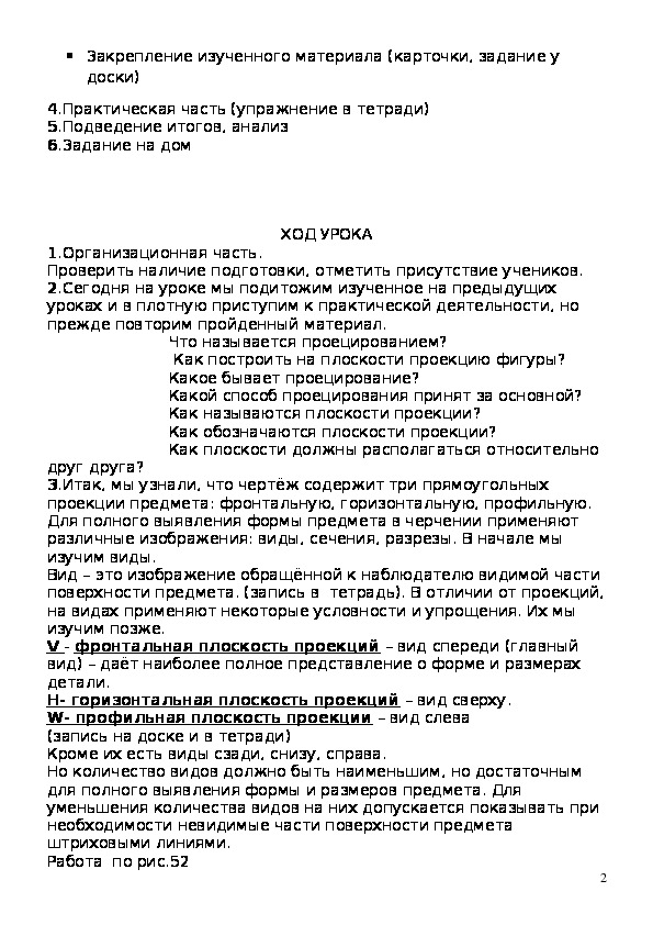 Цель урока: Обучающая – дать знание о правилах расположения видов.