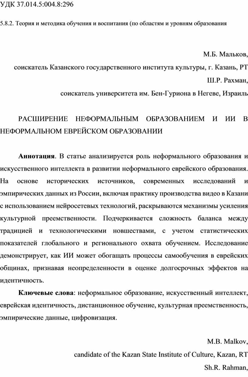 РАСШИРЕНИЕ НЕФОРМАЛЬНЫМ ОБРАЗОВАНИЕМ И ИИ В НЕФОРМАЛЬНОМ ЕВРЕЙСКОМ ОБРАЗОВАНИИ