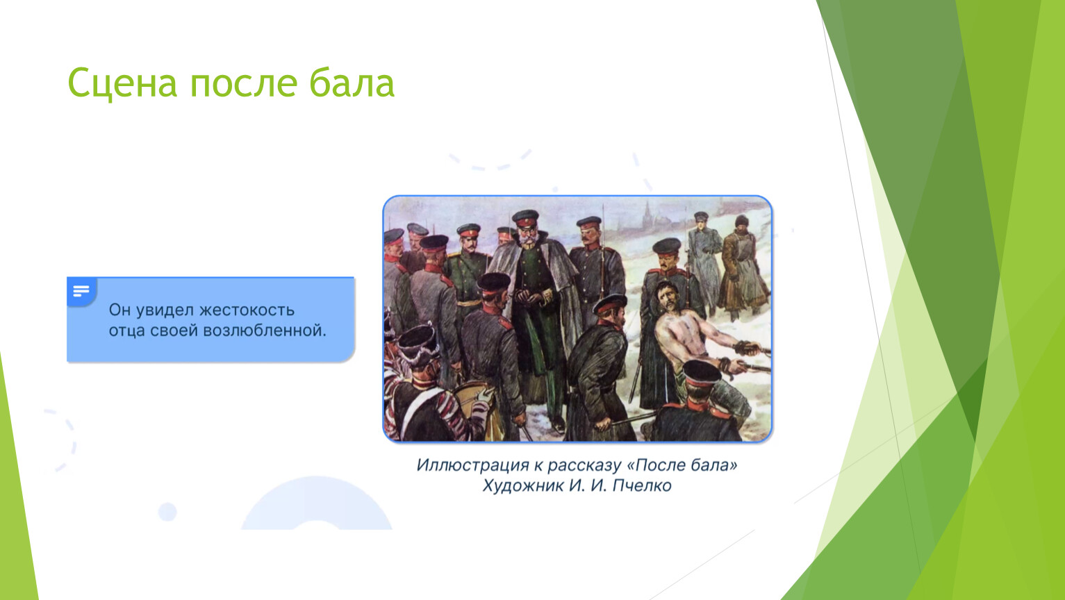 Напиши синквейн «Тема, идея и проблематика рассказа Л.Н. Толстого «После бала».