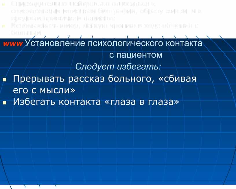 n Снисходительно-нейтрально относиться к сомнительным моментам биографии, образу жизни и к вредным привычкам пациента