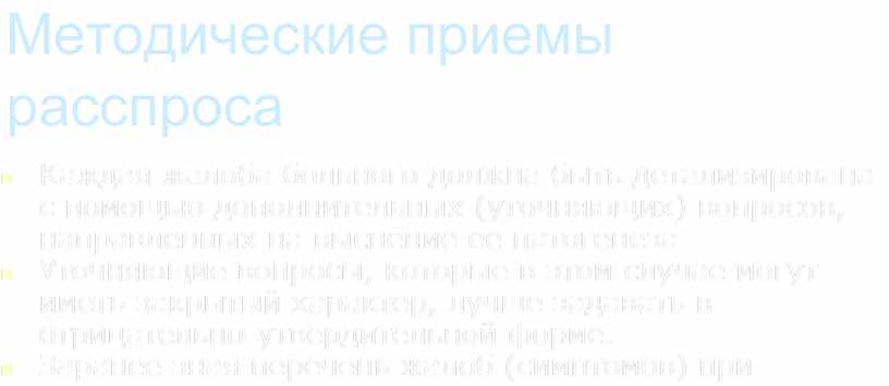 n Предоставлять пациенту возможность свободного высказывания (особенно в начале расспроса)