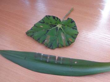 1. Для того чтобы получить вытяжку пигментов, я взяла листья шефлеры и листья бегонии.