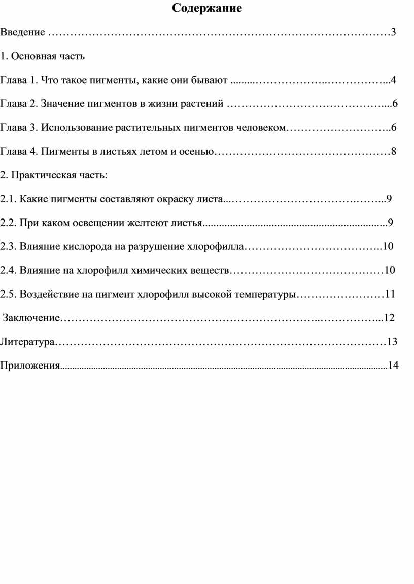 Глава 2. Значение пигментов в жизни растений ……………………………………....6