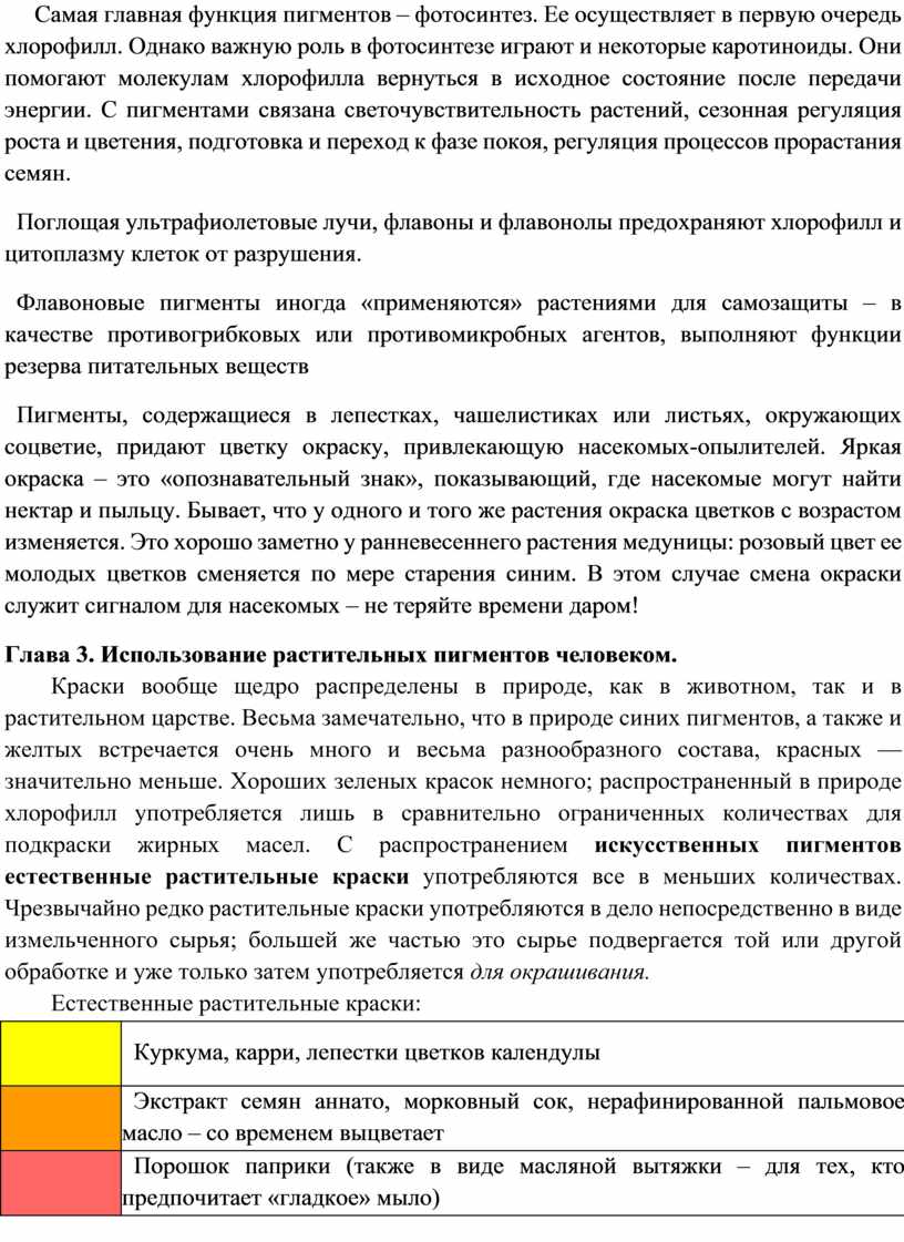 Глава 2. Значение пигментов в жизни растений.