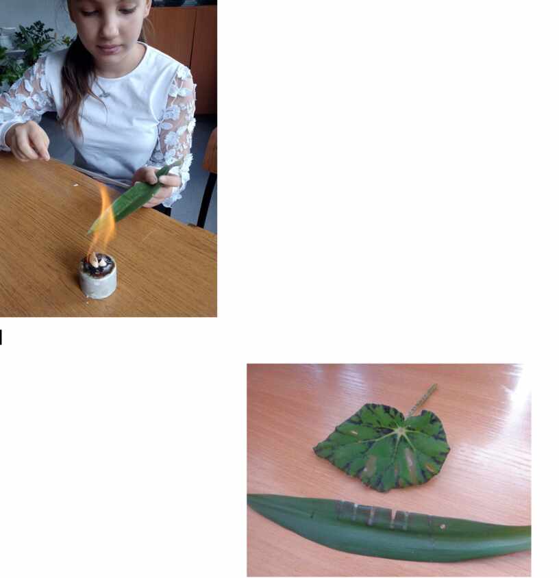 Оборудование: Для опыта нужны зеленые листья растений, спиртовка, металлические щипцы.