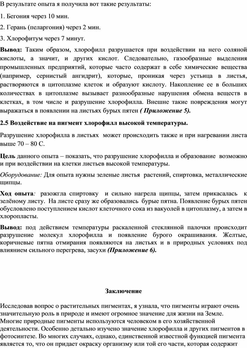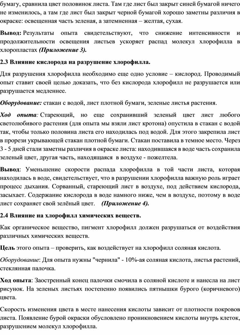 Приложение №5. Влияние на хлорофилл химических веществ.