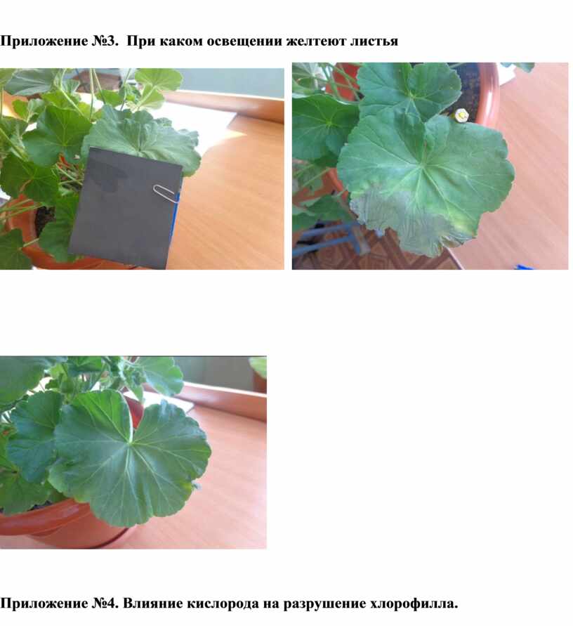 Приложение №3. При каком освещении желтеют листья