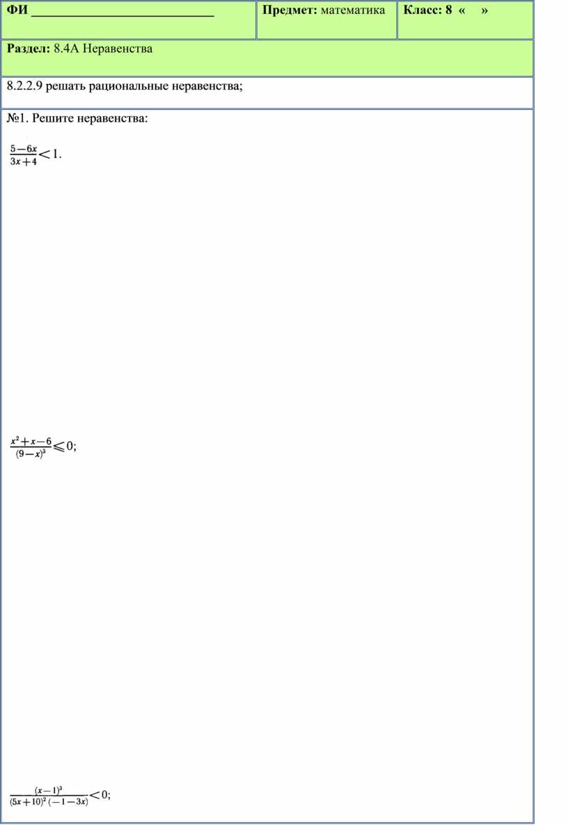 Дескрипторы: Учащийся: Находит ОДЗ Применяет метод интервалов для решения неравенств Правильно находит промежутки, удовлетворяющие условие неравенства ри каких значениях переменной имеет смысл выражение: |