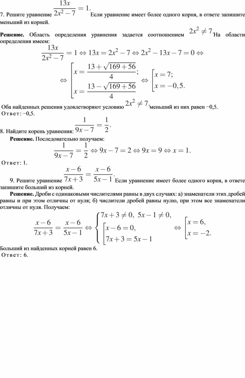 Рациональные уравнения из материалов ЕГЭ базового уровня.