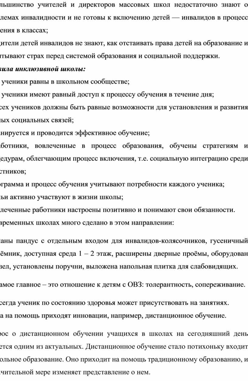 Правила инклюзивной школы: