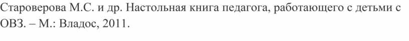 10. Староверова М.С. и др. Настольная книга педагога, работающего с детьми с ОВЗ. – М.: Владос, 2011.