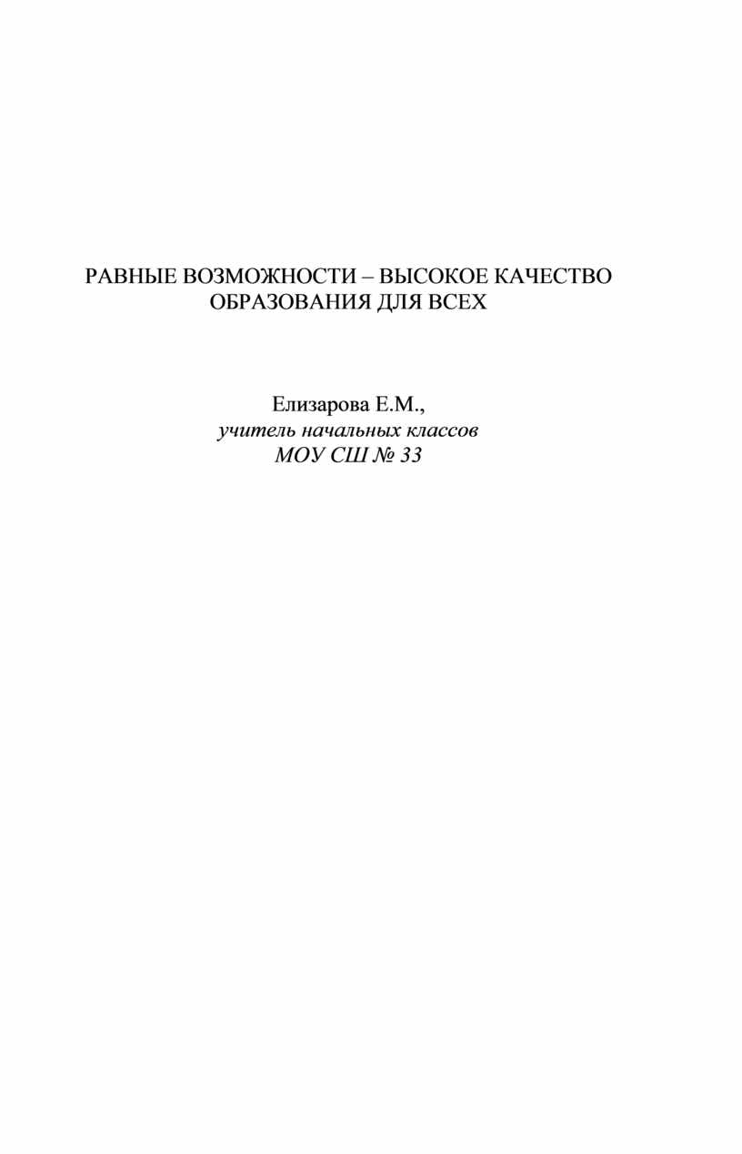 РАВНЫЕ ВОЗМОЖНОСТИ – ВЫСОКОЕ КАЧЕСТВО
