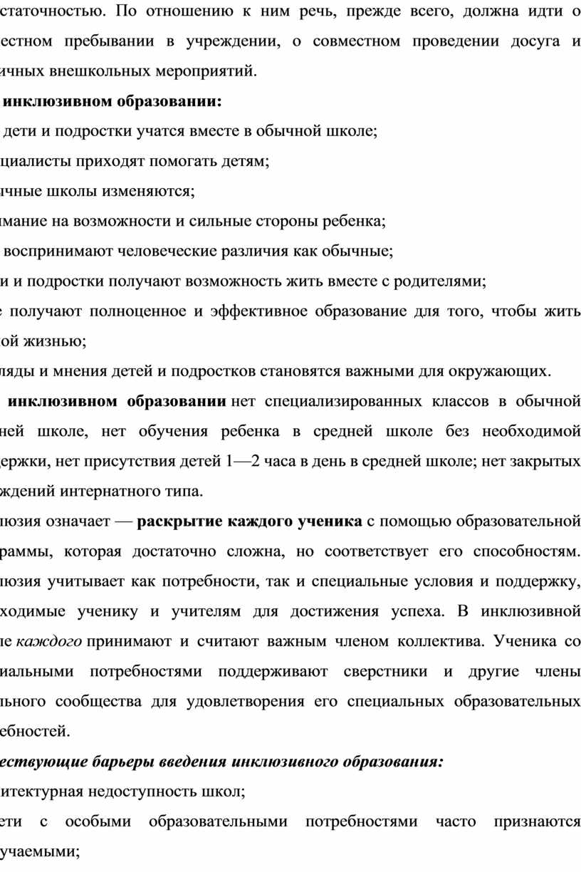 Существующие барьеры введения инклюзивного образования: