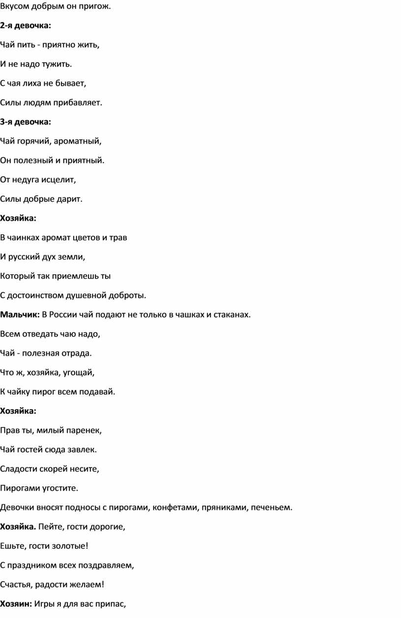 Хозяин: Крепка сказка складом, а песня – ладом. Ну-ка встанем все рядком, да частушки пропоем! Кто из вас частушки петь горазд?