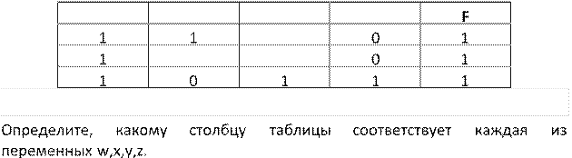 но успел заполнить лишь фрагмент из трёх различных её строк, даже не указав, какому столбцу таблицы соответствует каждая из переменных w,x,y,z.