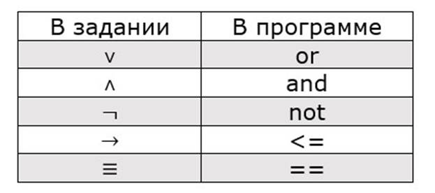 # формирование функции которая возвращает данное высказывание def f(x, y, z, w): return ((w <= y) <= x) or (not z)