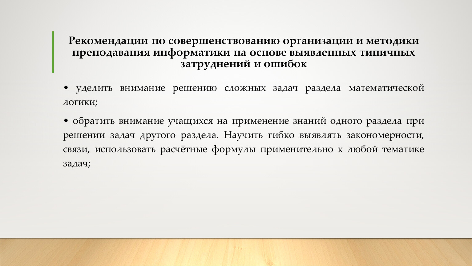 Рекомендации по совершенствованию организации и методики преподавания информатики на основе выявленных типичных затруднений и ошибок