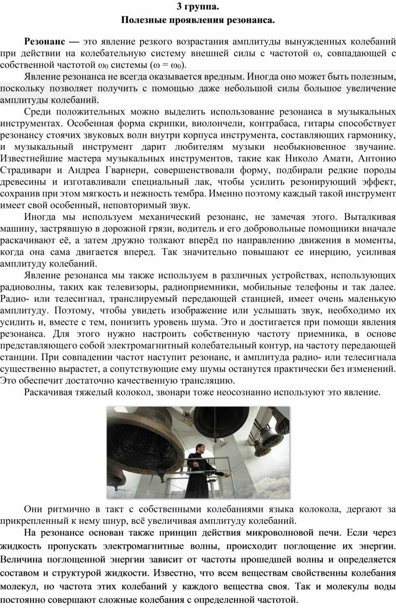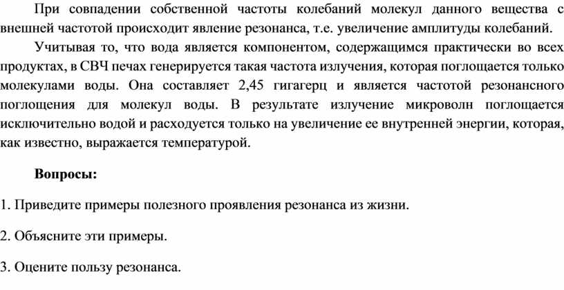 1. Приведите примеры полезного проявления резонанса из жизни.