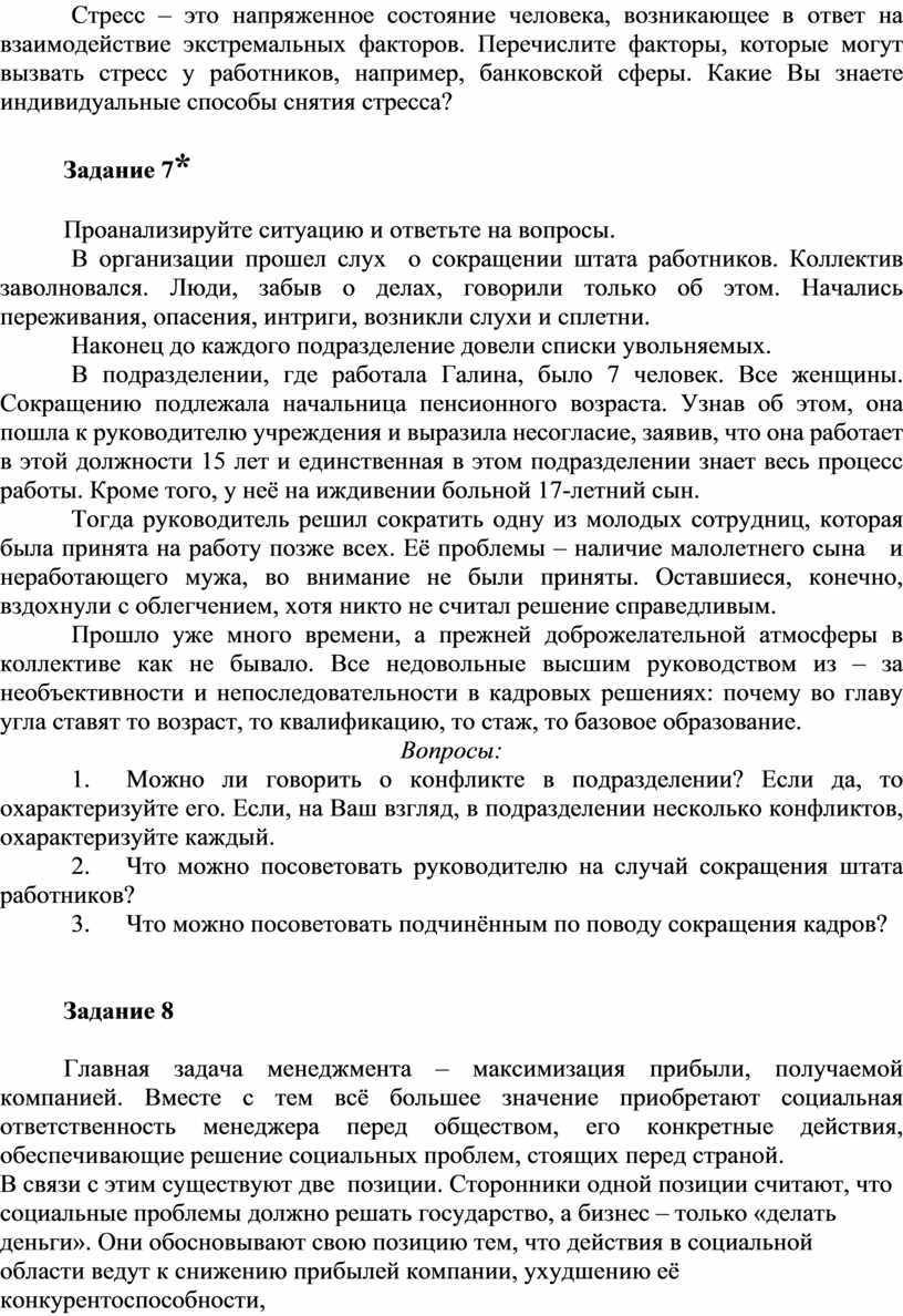 Стресс – это напряженное состояние человека, возникающее в ответ на взаимодействие экстремальных факторов. Перечислите факторы, которые могут вызвать стресс у работников, например, банковской сферы. Какие Вы знаете индивидуальные способы снятия стресса?