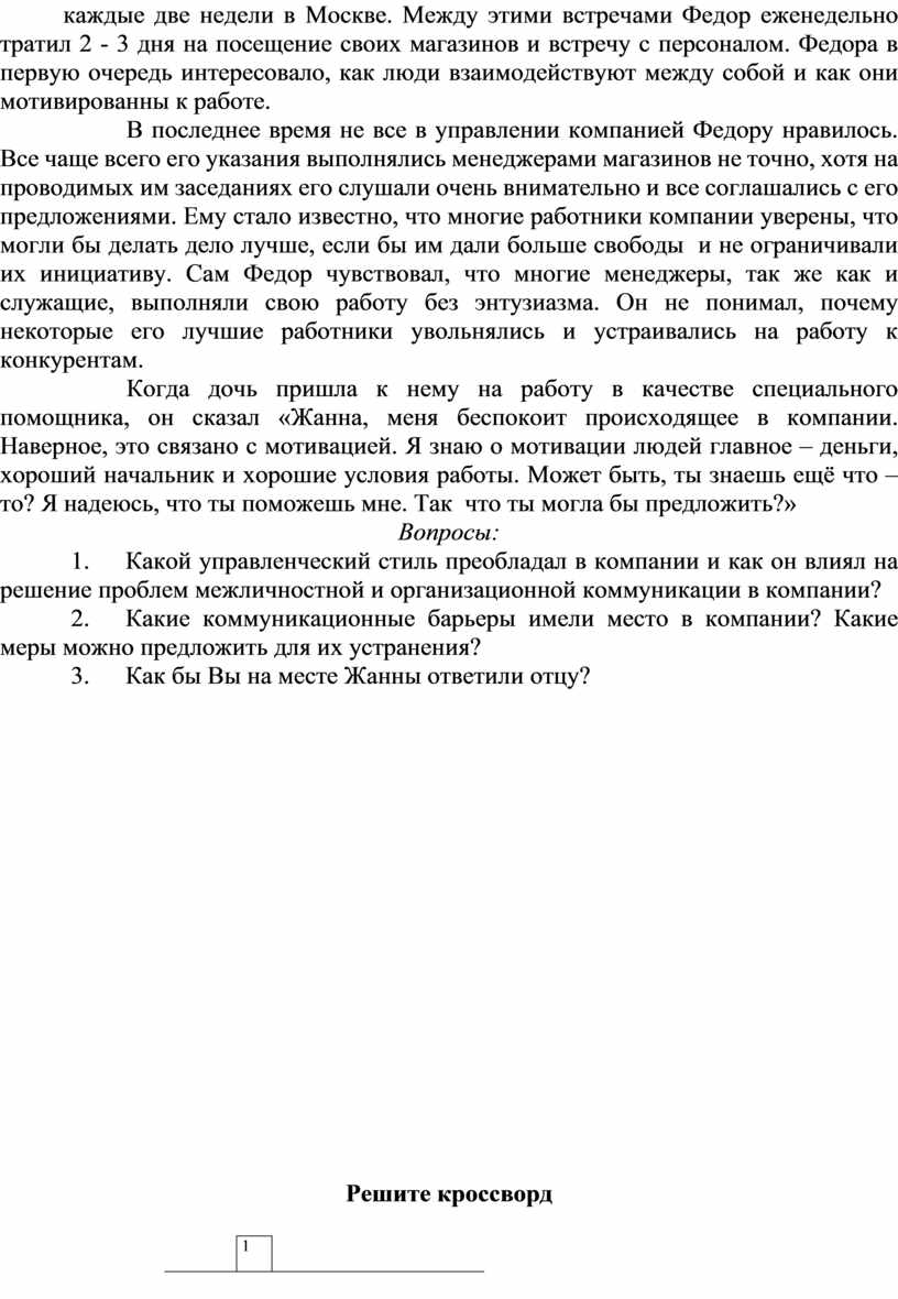 1. Какой управленческий стиль преобладал в компании и как он влиял на решение проблем межличностной и организационной коммуникации в компании?