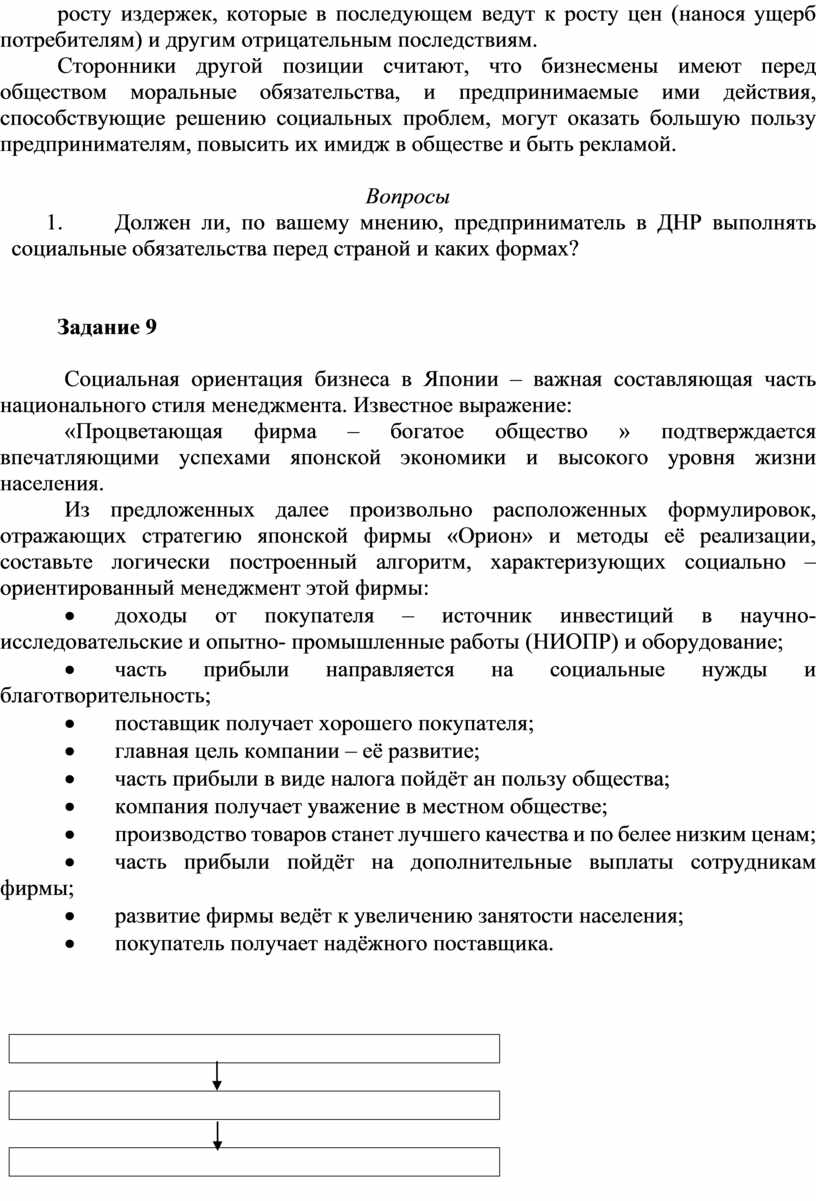 Из предложенных далее произвольно расположенных формулировок, отражающих стратегию японской фирмы «Орион» и методы её реализации, составьте логически построенный алгоритм, характеризующих социально – ориентированный менеджмент этой фирмы: