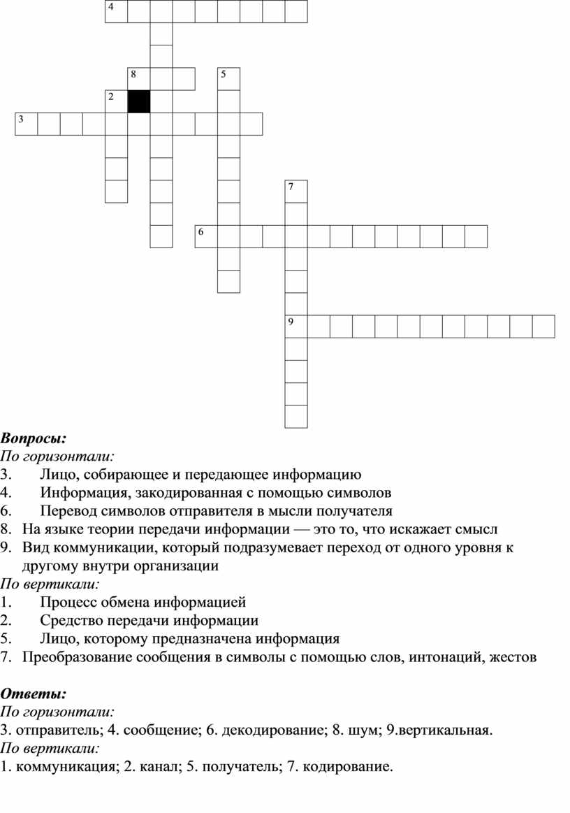 3. отправитель; 4. сообщение; 6. декодирование; 8. шум; 9.вертикальная.