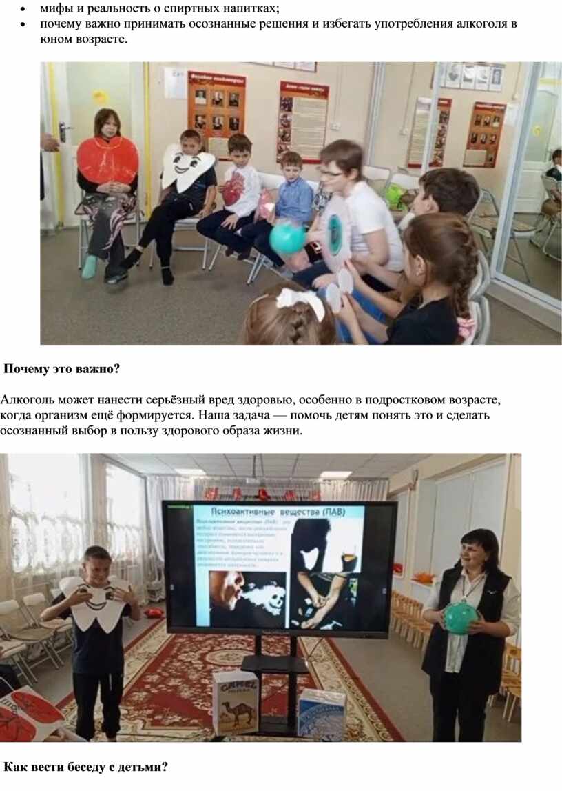 Алкоголь может нанести серьёзный вред здоровью, особенно в подростковом возрасте, когда организм ещё формируется. Наша задача — помочь детям понять это и сделать осознанный выбор в пользу здорового образа жизни.