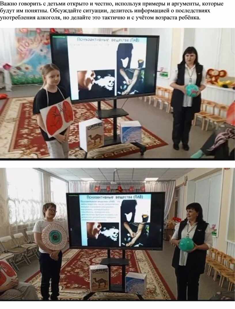 Важно говорить с детьми открыто и честно, используя примеры и аргументы, которые будут им понятны. Обсуждайте ситуации, делитесь информацией о последствиях употребления алкоголя, но делайте это тактично и с учётом возраста ребёнка.