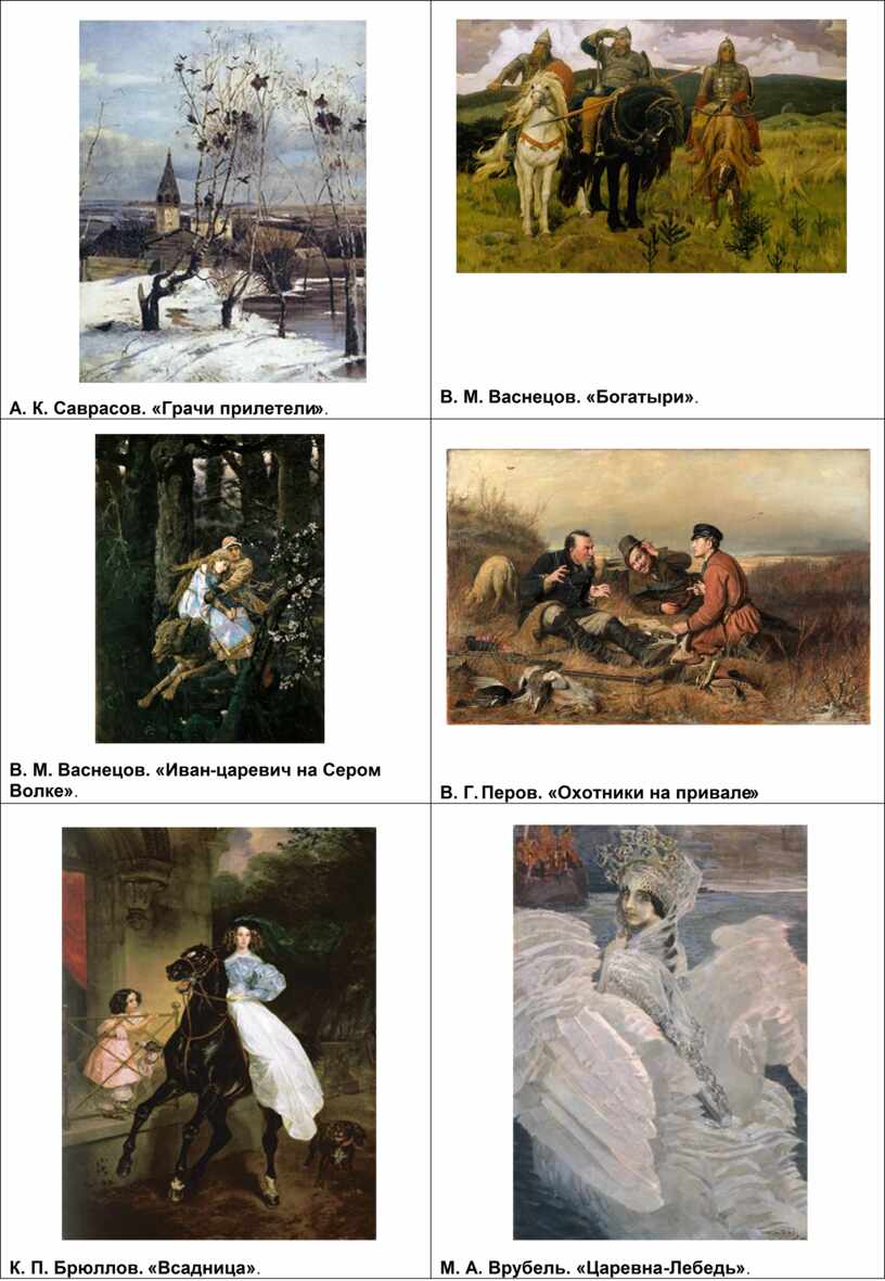 Текст для педагога: «Перед вами репродукции картин из коллекции Третьяковской галереи. Это лишь малая часть того, что там хранится. Я предлагаю вам выбрать одну картину, которая привлекла ваше внимание. Не спешите. Посмотрите на неё внимательно. А теперь ответьте на вопросы про свою картину: