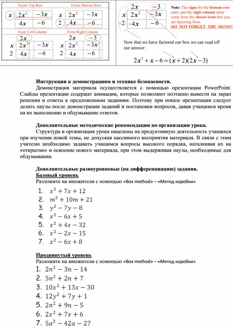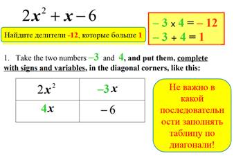 Разложите на множители с помощью «Box method» – «Метод коробки»
