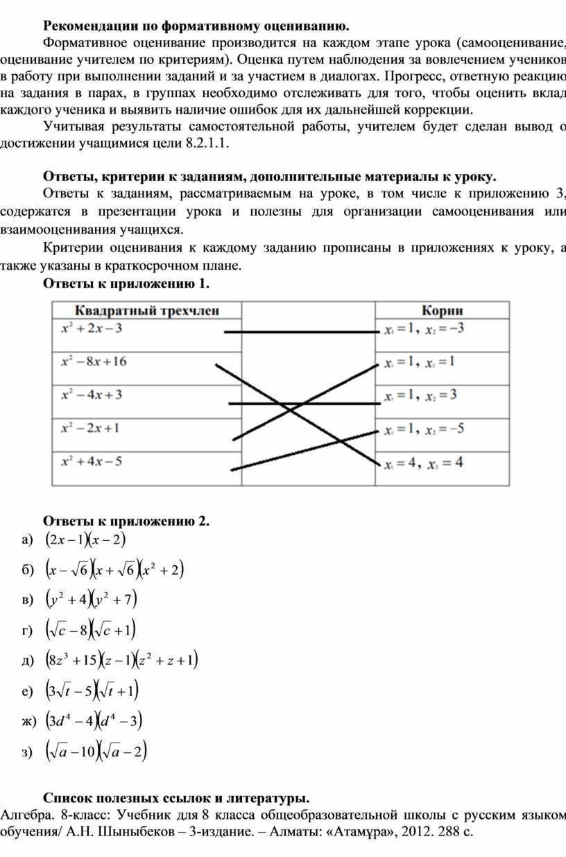 8.2.1.3 раскладывать квадратный трехчлен на множители;