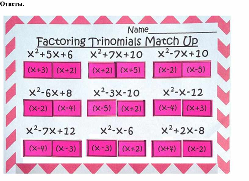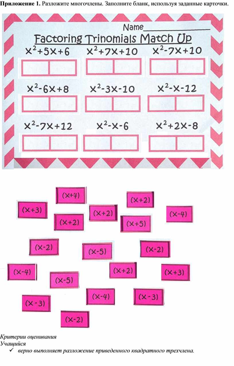 Приложение 1. Разложите многочлены. Заполните бланк, используя заданные карточки.