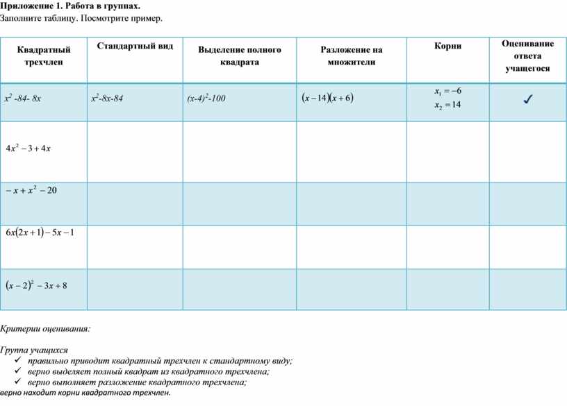 Приложение 1. Работа в группах.
