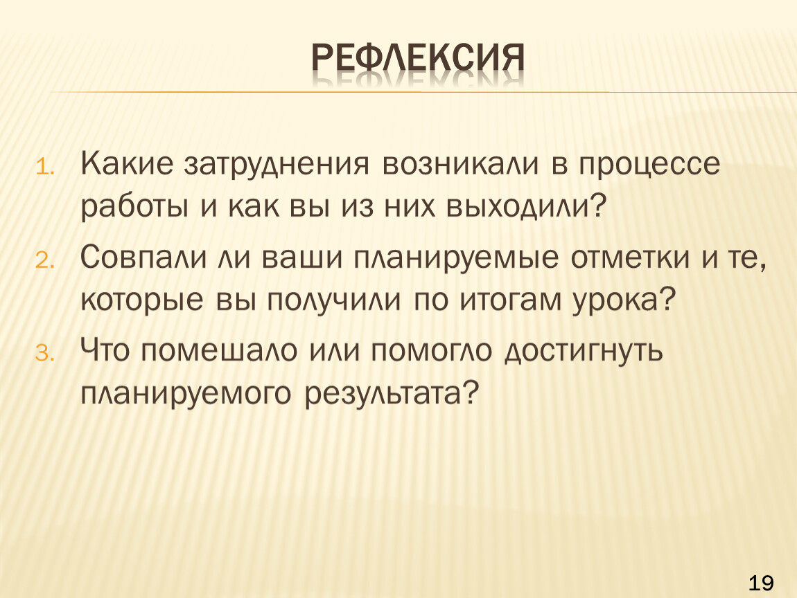 Совпали ли ваши планируемые отметки и те, которые вы получили по итогам урока?