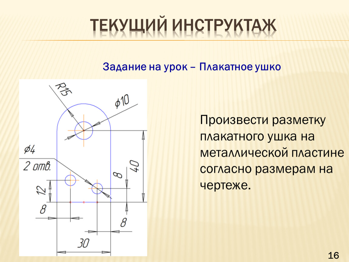 Произвести разметку выбранного вами изделия в соответствии с рабочим чертежом: