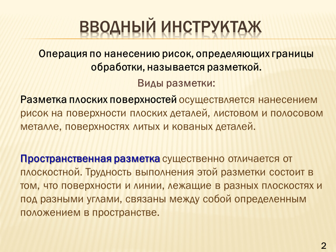Операция по нанесению рисок, определяющих границы обработки, называется разметкой.