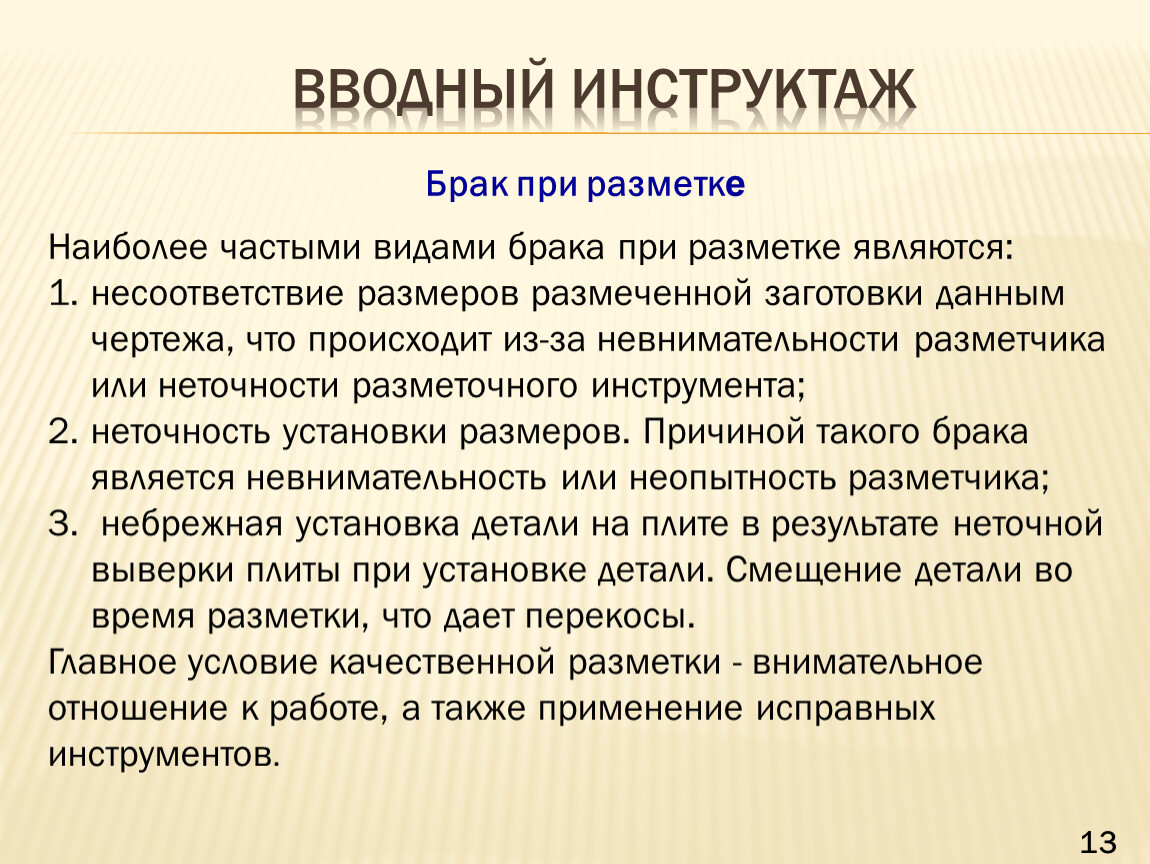 несоответствие размеров размеченной заготовки данным чертежа, что происходит из-за невнимательности разметчика или неточности разметочного инструмента;