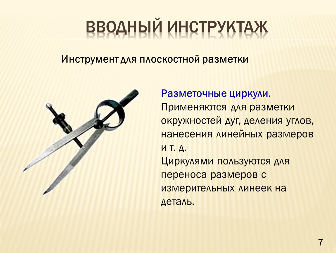 Разметочные циркули. Применяются для разметки окружностей дуг, деления углов, нанесения линейных размеров и т. д.