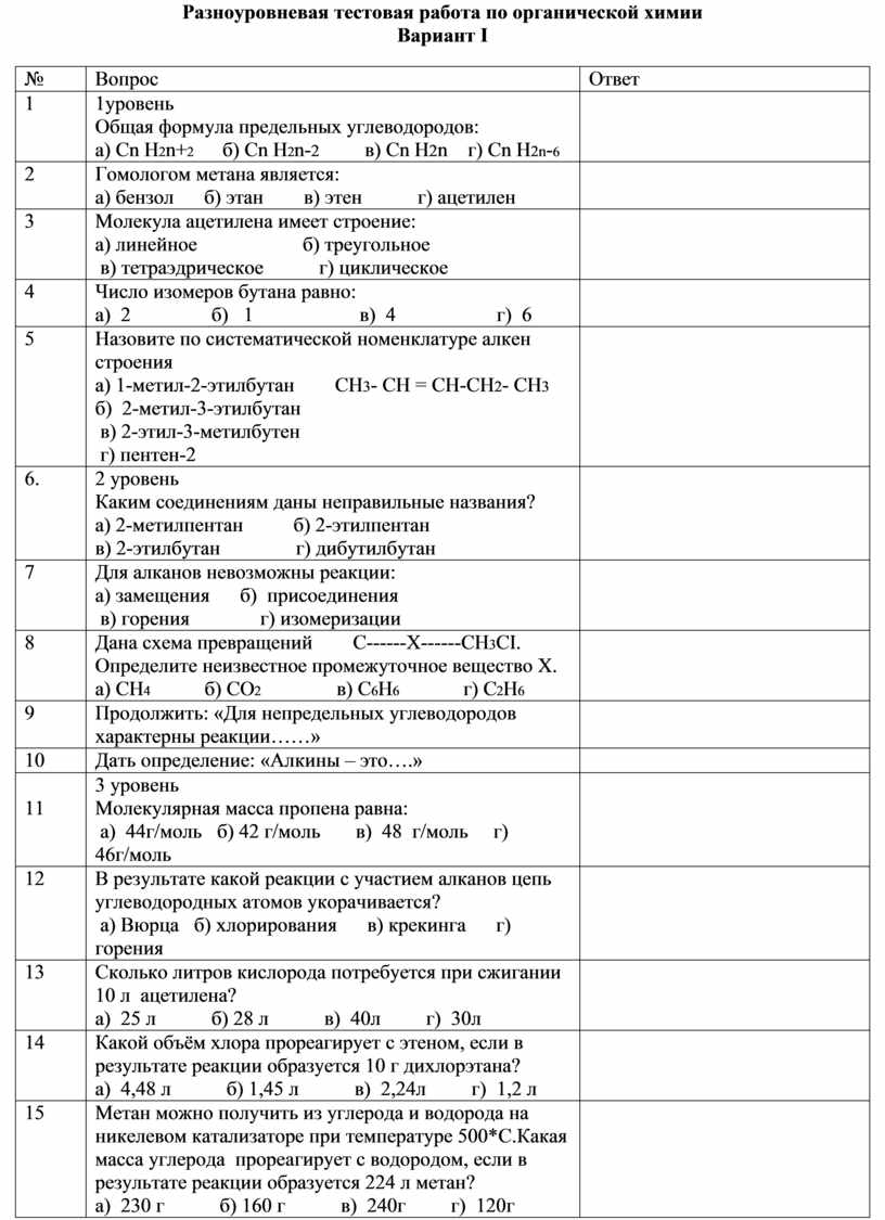 1уровень Общая формула предельных углеводородов: а) Сn H2n+2 б) Сn H2n-2 в) Сn H2n г) Сn H2n-6 |