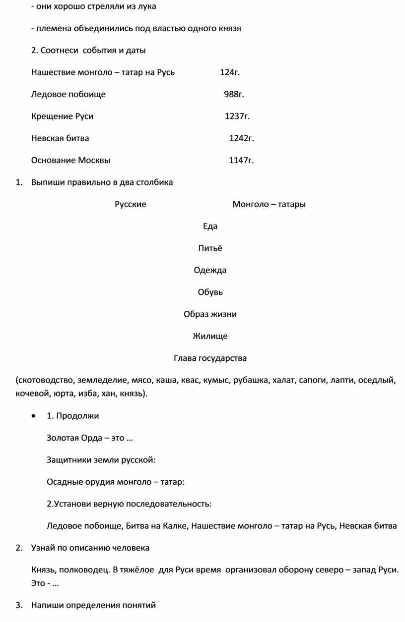 В борьбе с монголо – татарами русские потерпели поражение, потому что …