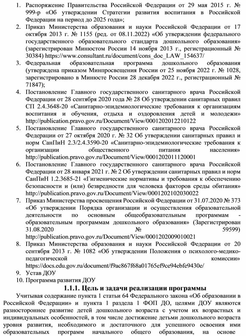 2. Федеральной образовательной программой дошкольного образования (далее – ФОП), утверждённой приказом Министерства образования и науки Российской Федерации от 25 ноября 2022г. №1028 (зарегистрирован Министерством юстиции Российской Федерации 28 декабря 2022г., регистрационный №71847)