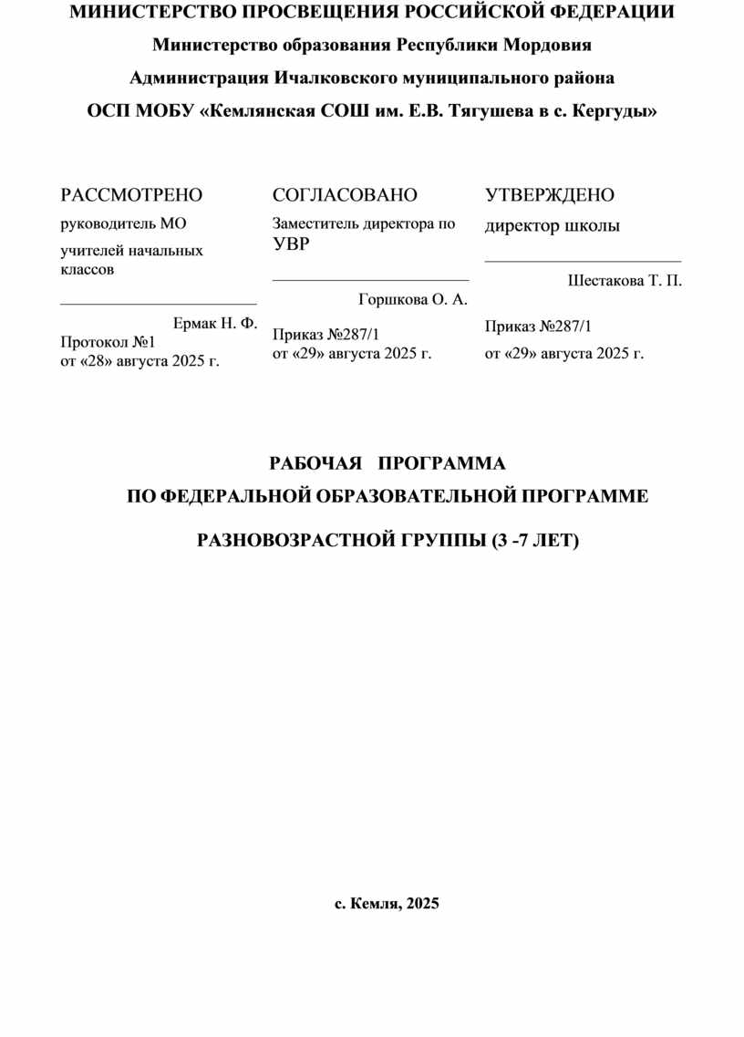 РАССМОТРЕНО руководитель МО учителей начальных классов ________________________ Ермак Н. Ф. Протокол №1 от «28» августа 2025 г.
